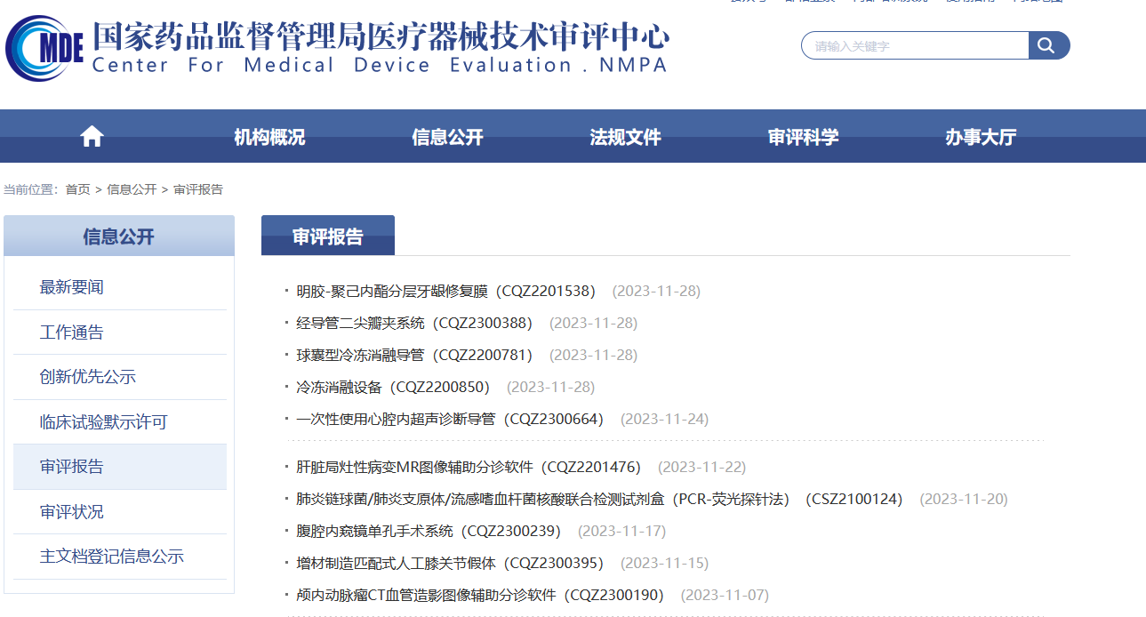 查询方式:--<国家药监局器械审评中心>--<信息公开>--<审评报告>
