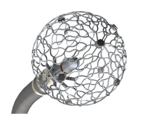 Afera 的 Sphere-9 和 Sphere-360 导管都使用其镍钛合金晶格作为单个球形电极来为消融提供能量。当 Sphere-9 从患者心脏内的导引器中释放时,它会膨胀成球形以进行局灶消融。