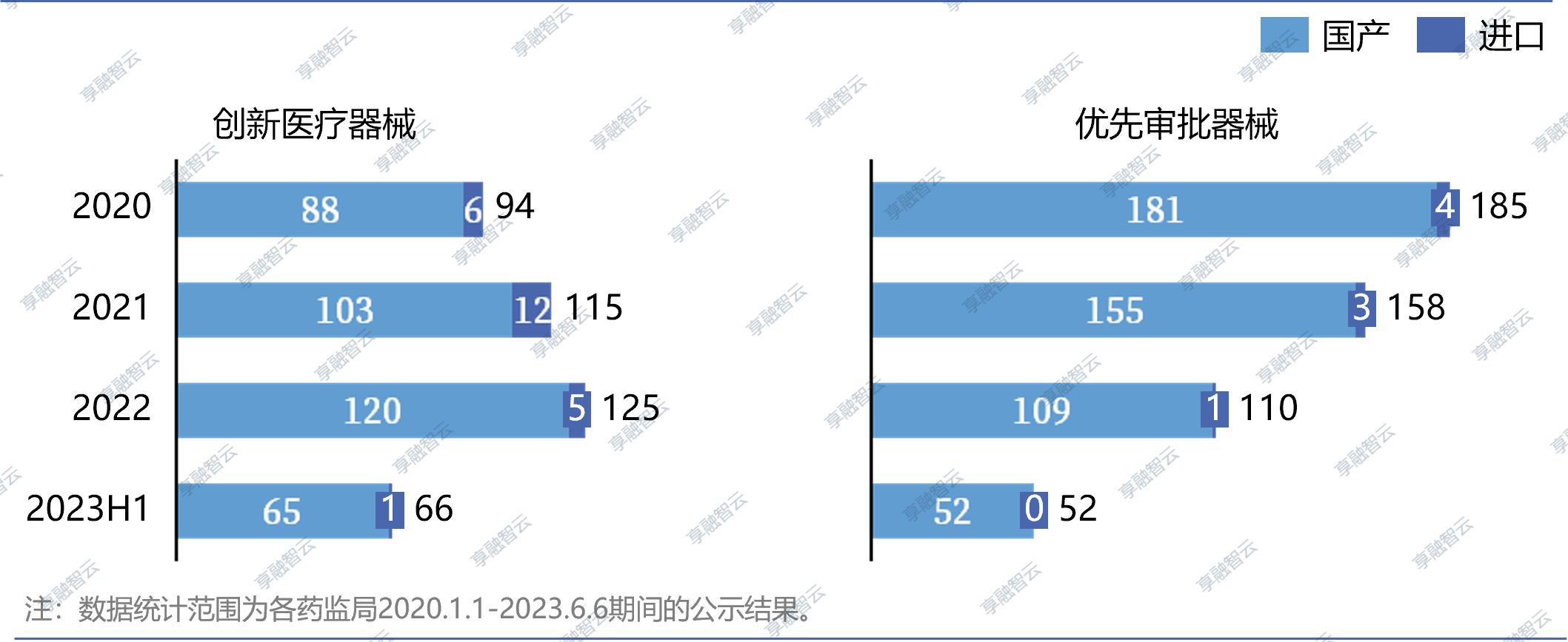 创新医疗器械、优先审批器械是我国为加速国内首创、性能有根本性改进、技术国际领先、临床应用价值显著的二、三类医疗器械产品上市而特别开设的审批审评绿色通道,代表了产品的先进性和稀缺性。