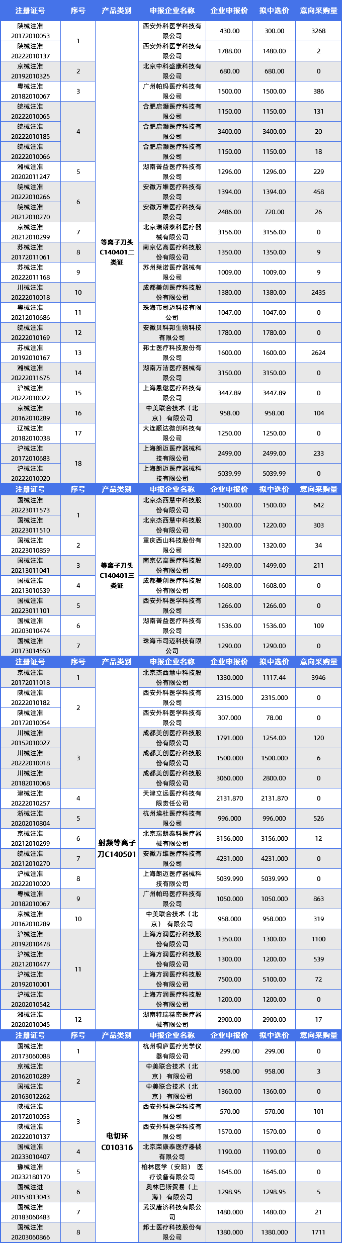 《通知》明确等离子刀头、射频切割凝闭刀头、电切环三类医用耗材,94个产品报量,最终60个产品中选,淘汰率达到36%。