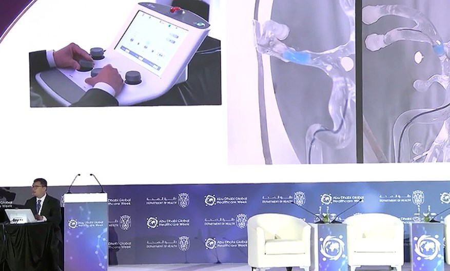 最近,我参加了世界上第一个使用远程机器人技术的机械血栓切除术的演示。在阿布扎比的一个控制面板上,我成功地对韩国的一名模拟病人进行了机器人辅助手术。